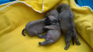 It is hard to believe anything that is soon going to have her whole house topsy-turvy can start out being this small! Baby Bella is so adorably sweet. I can't wait to see her. I know I will have to go back down once Bella comes home, some time in May. I took her her some tiny new-puppy-sized prezzies:). She is small enough to fit on Stephanie's hand. Love her dark little smooshed-in face.